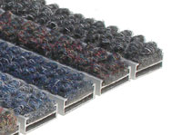 - Состоит из ворсовых вставок на алюминевых профилях, которые стянуты стальным тросом в группу, образующую единую систему грязезащитной решётки.